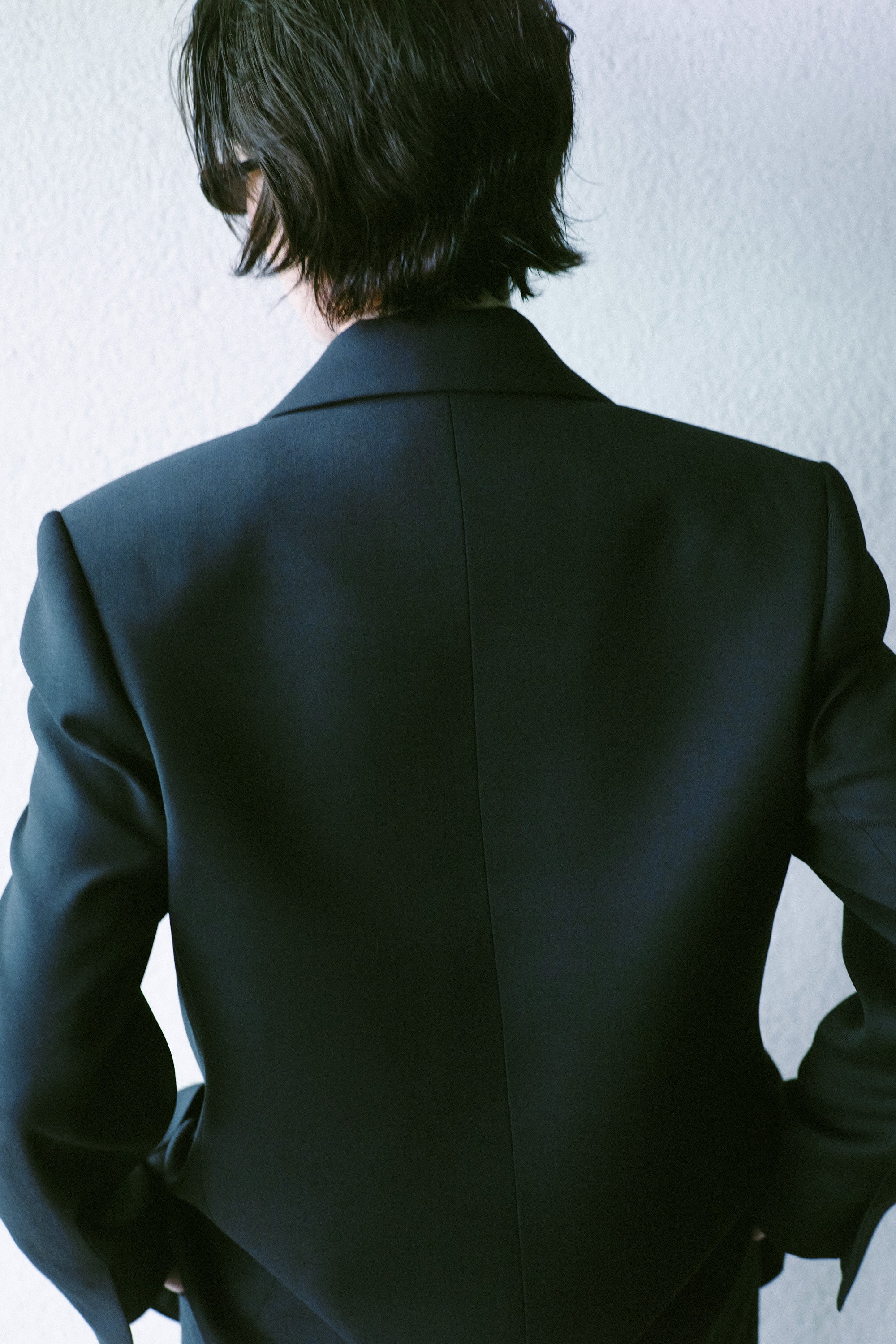 Inspired by classic menswear tailoring, this jacket is crafted from RWS certified wool and designed with a strong silhouette with a slightly loose fit. It features notch lapels and single button closure with a natural horn button. Style it with the matching Day and Night Pants for a coordinated look.