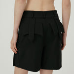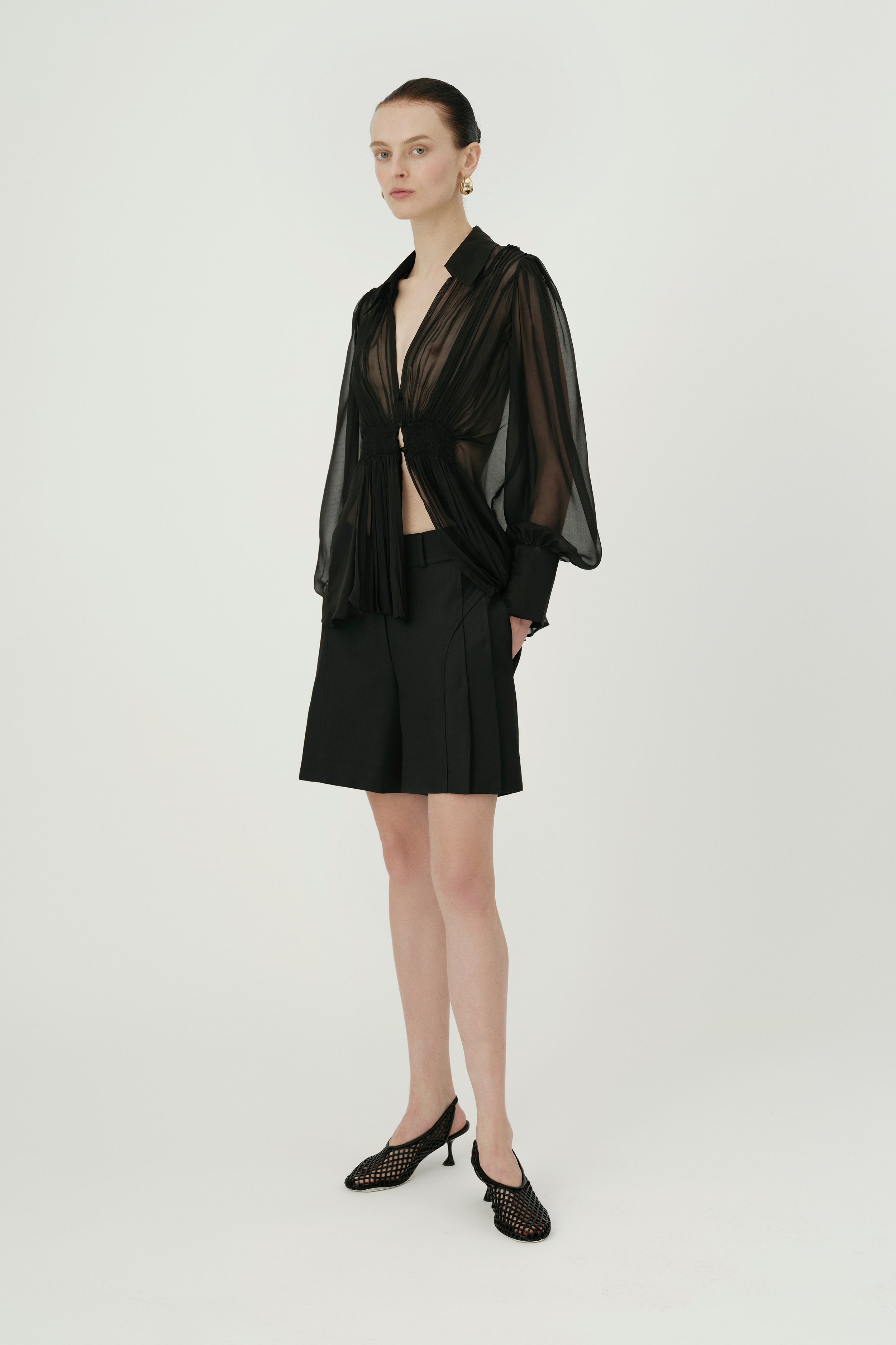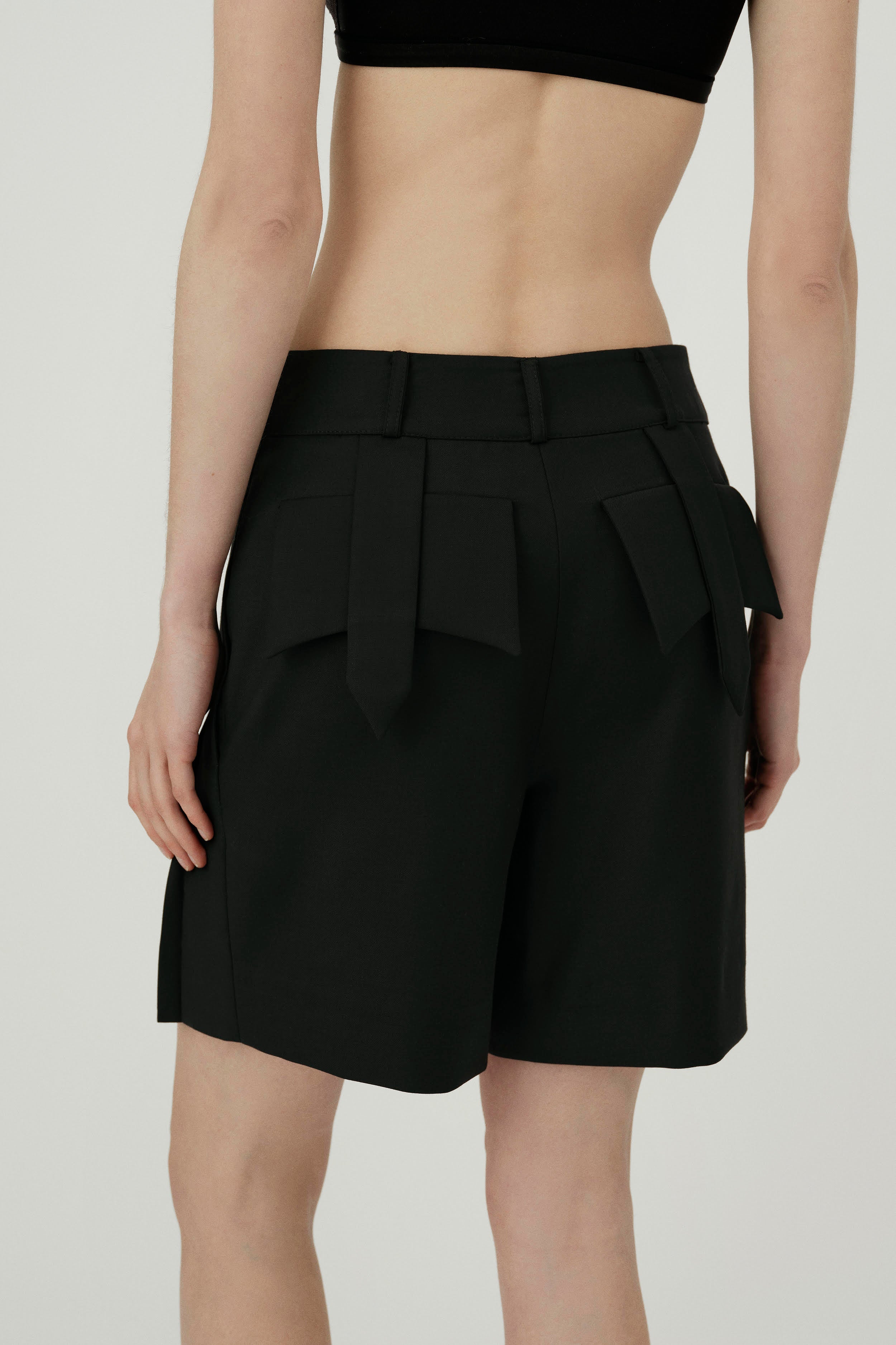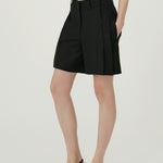 'Knee-length tailored shorts in wool fabrication. An elevated essential that belongs in every well-curated wardrobe, Francesca Shorts feature side pleats and back flap pockets with wide bands for added interest. Complete with side pockets, belt hoops, concealed zipper and hook and bar closure.