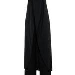 Strapless cape-effect jumpsuit tailored in wool. Defined by its voluminous, layered silhouette, this jumpsuit features a wrap front with inverted pleat detail. Complete with exposed back zipper.