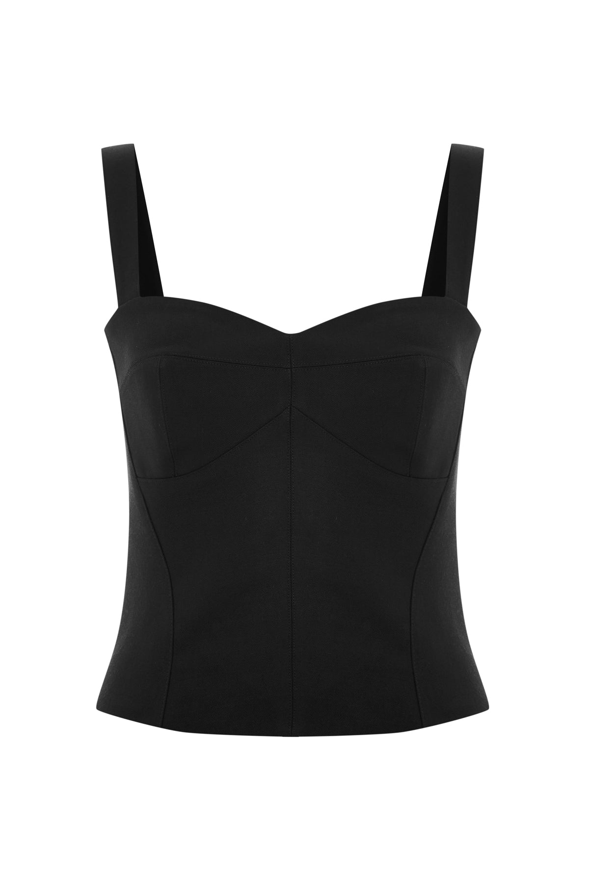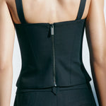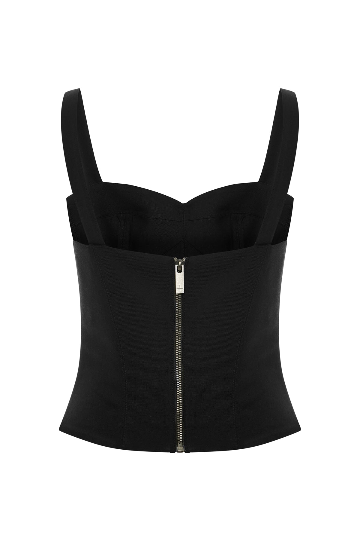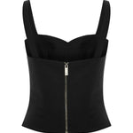 Strapped corset-style top with a structured silhouette shaped by darts. It boasts a sweetheart neckline and an exposed zipper at the back. Style it with the matching Avery Pants for a coordinated look.