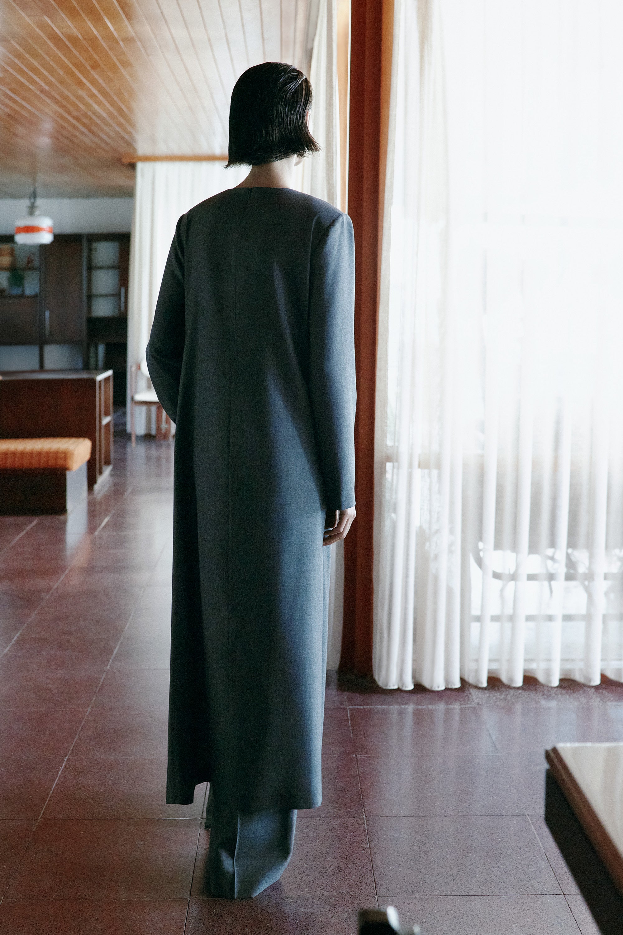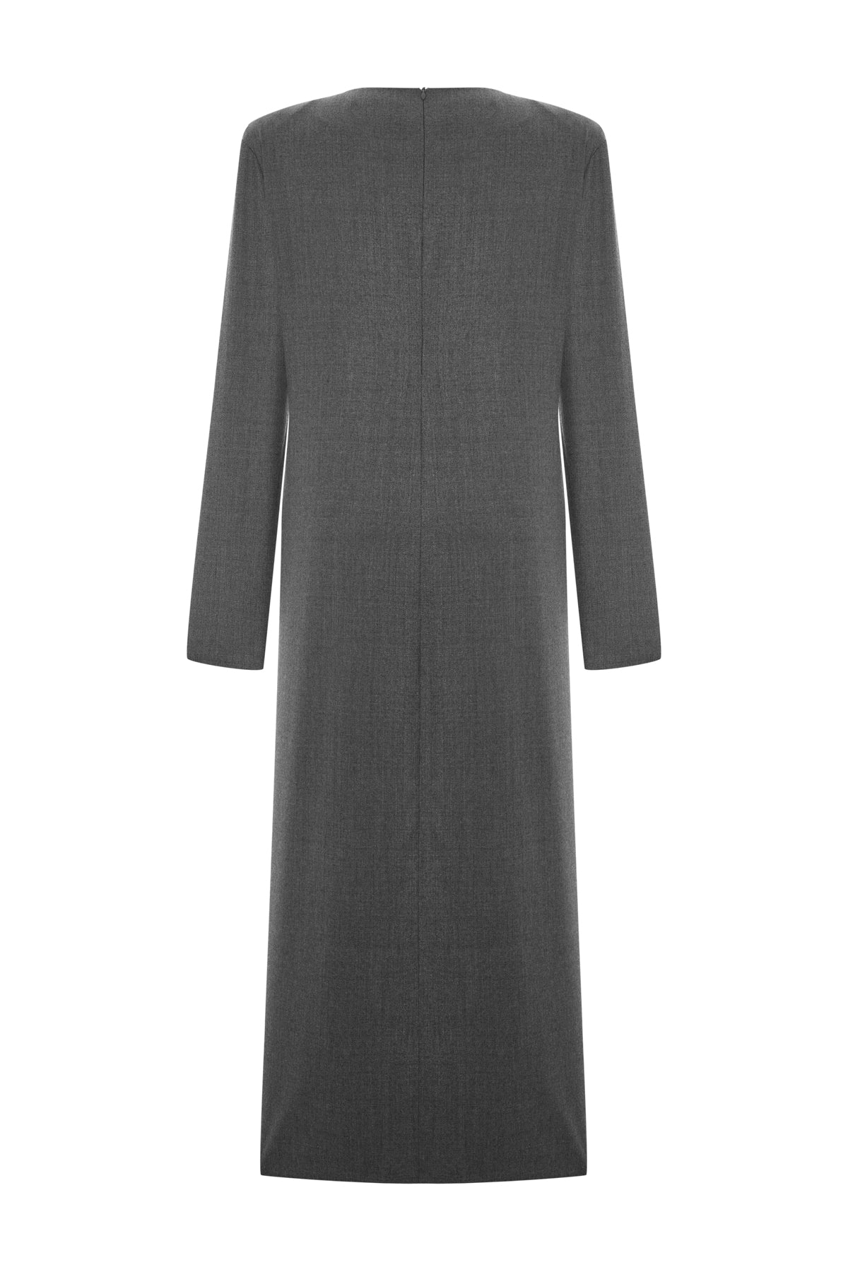 100% yün kumaştan şık ve rahat midi tunik elbise, kol altından etek ucuna