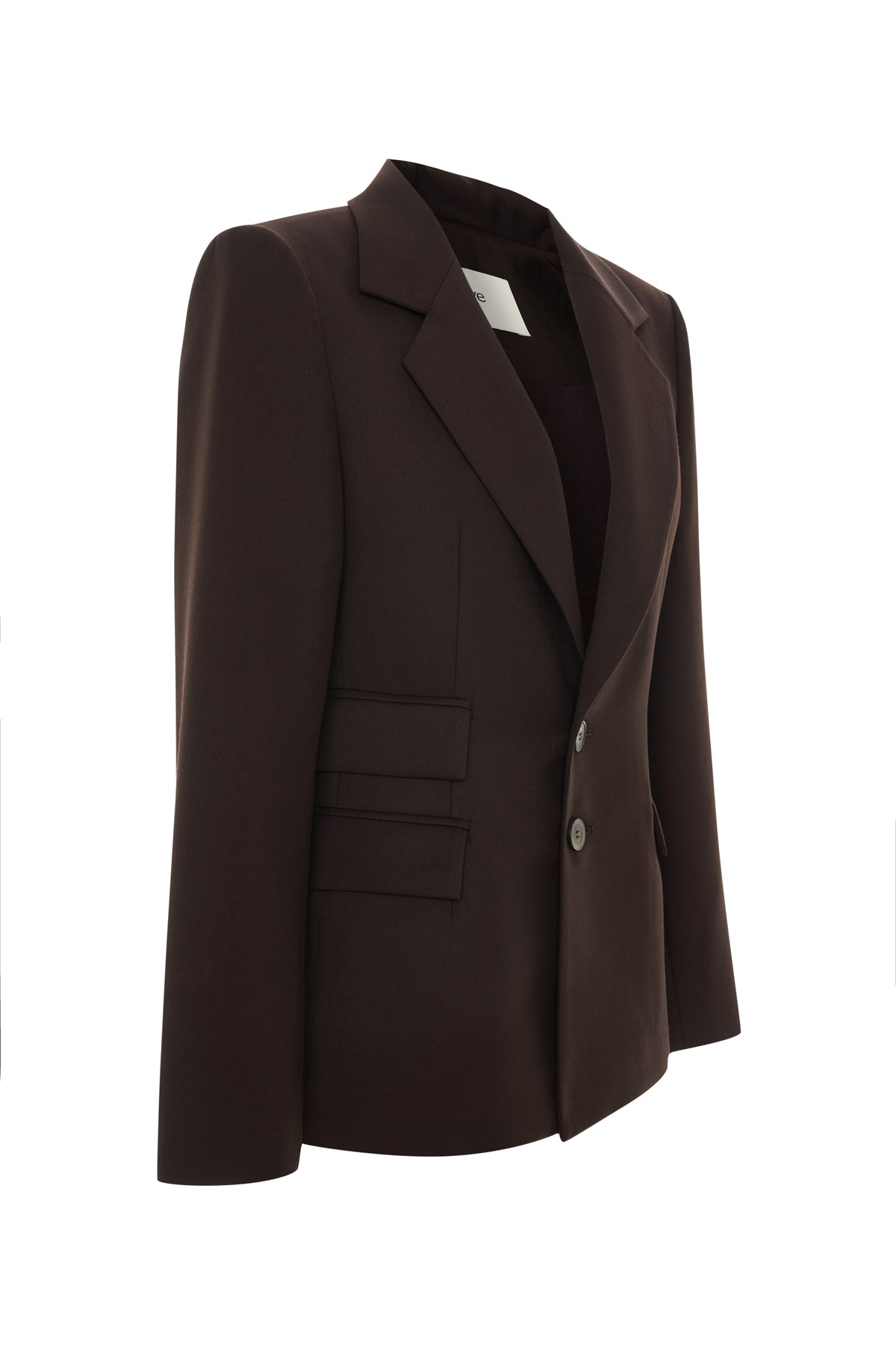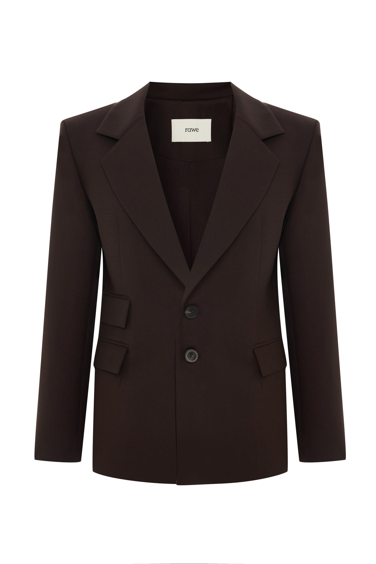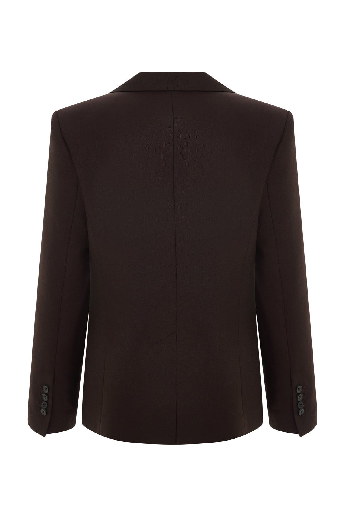 Kızıl kahverengi tonunda %100 yünlü kumaştan tasarlananan ceket, rahat bir