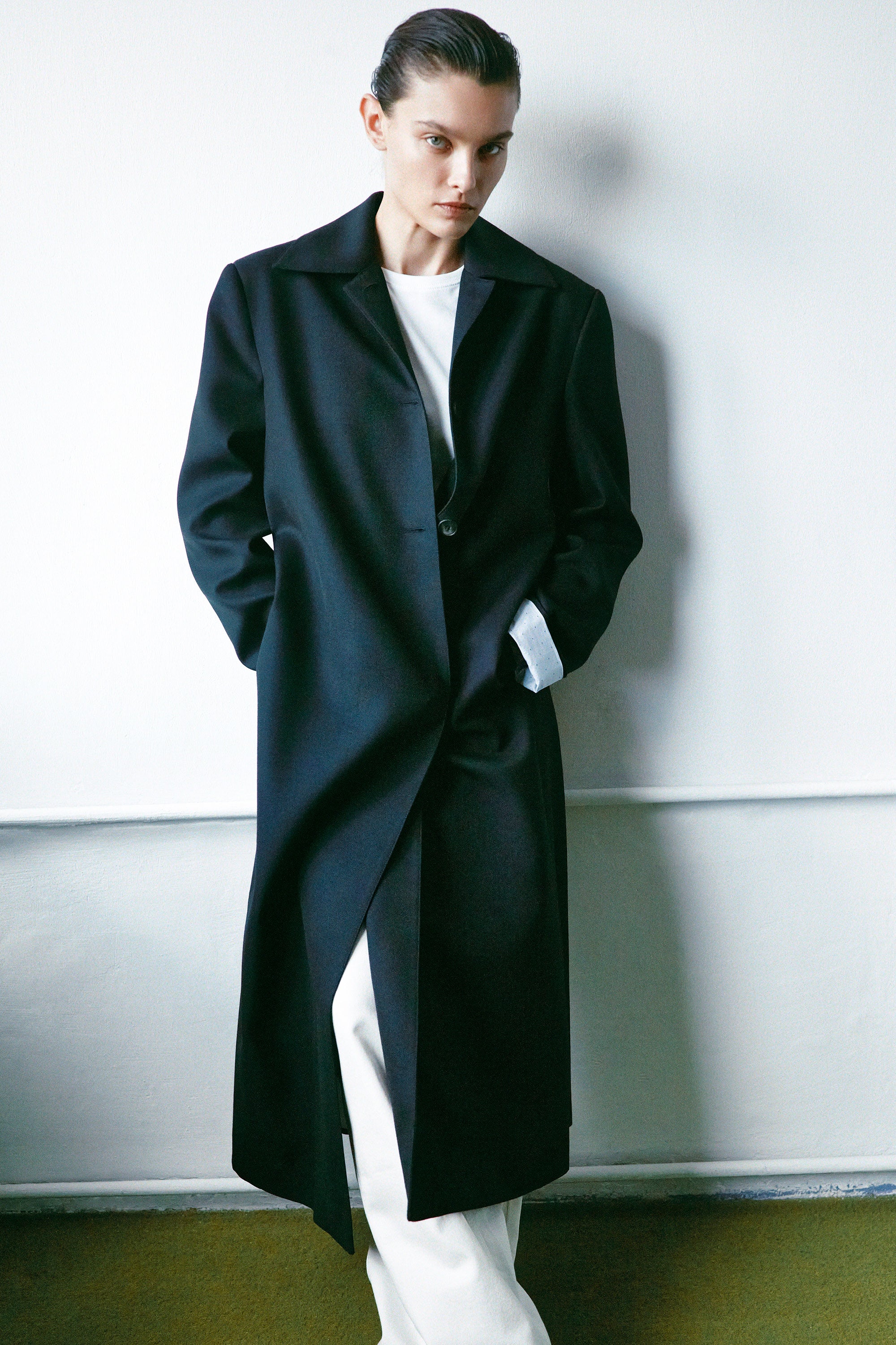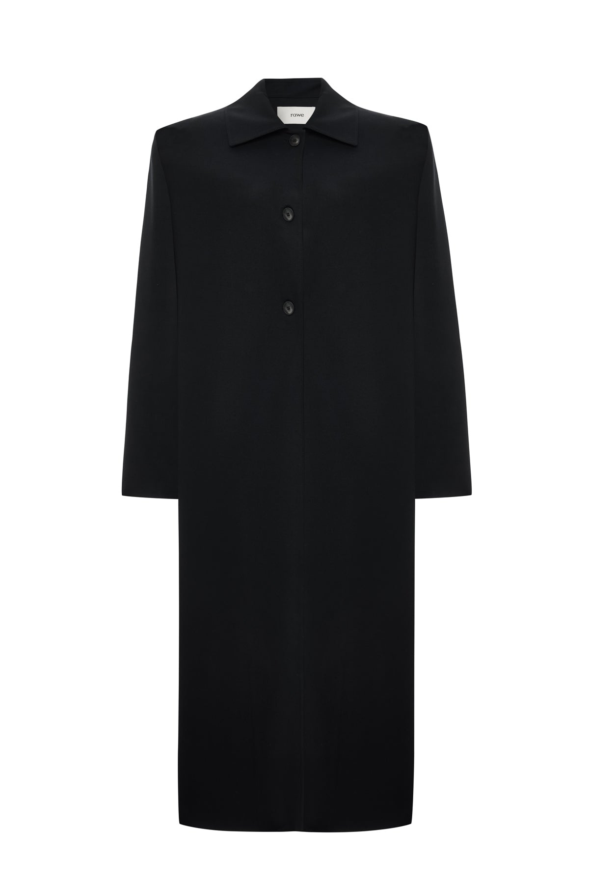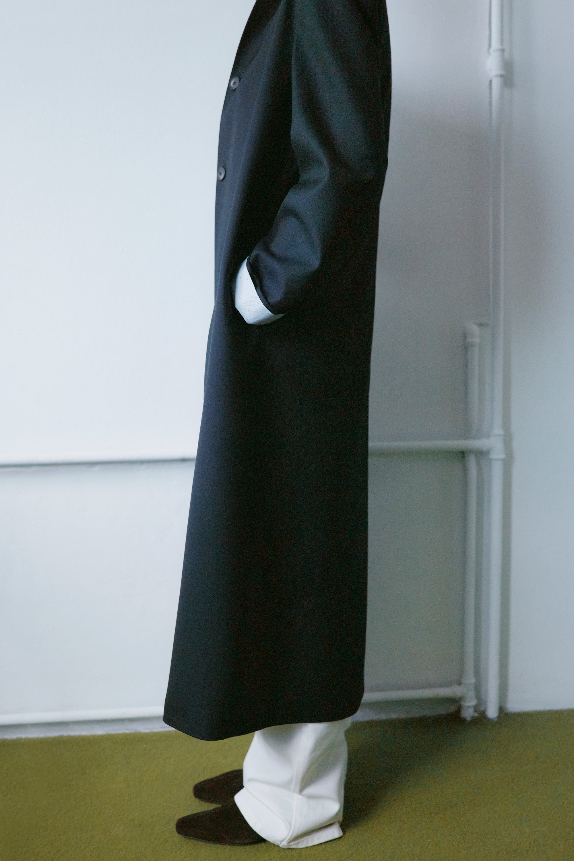 Koton astarlı, uzun yün palto. İçine kalın giysiler giyilmesine uygun şekilde
