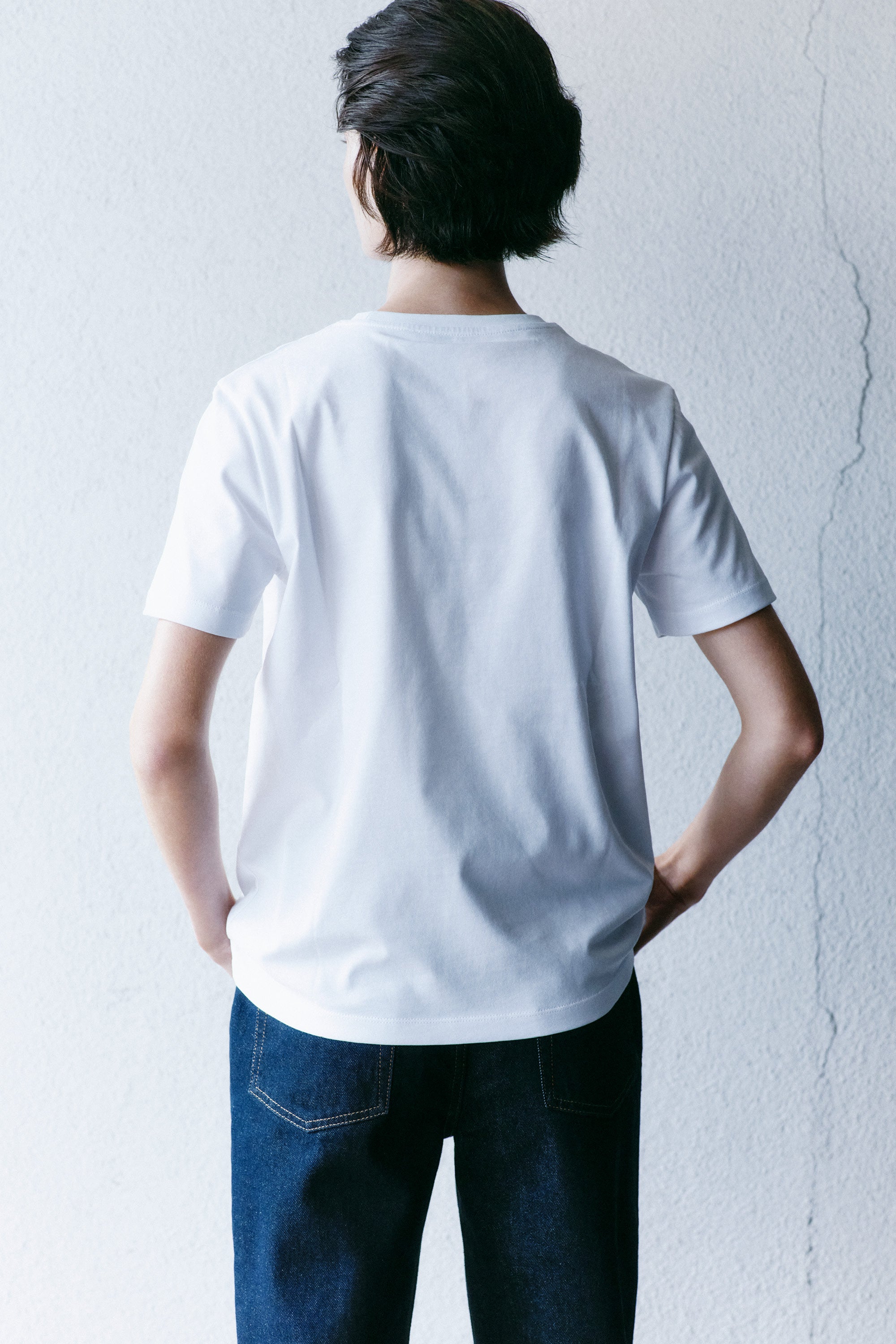 Klasik kısa kollu tişört, şeklini koruyan orta ağırlıkta organik pamuklu kumaştan