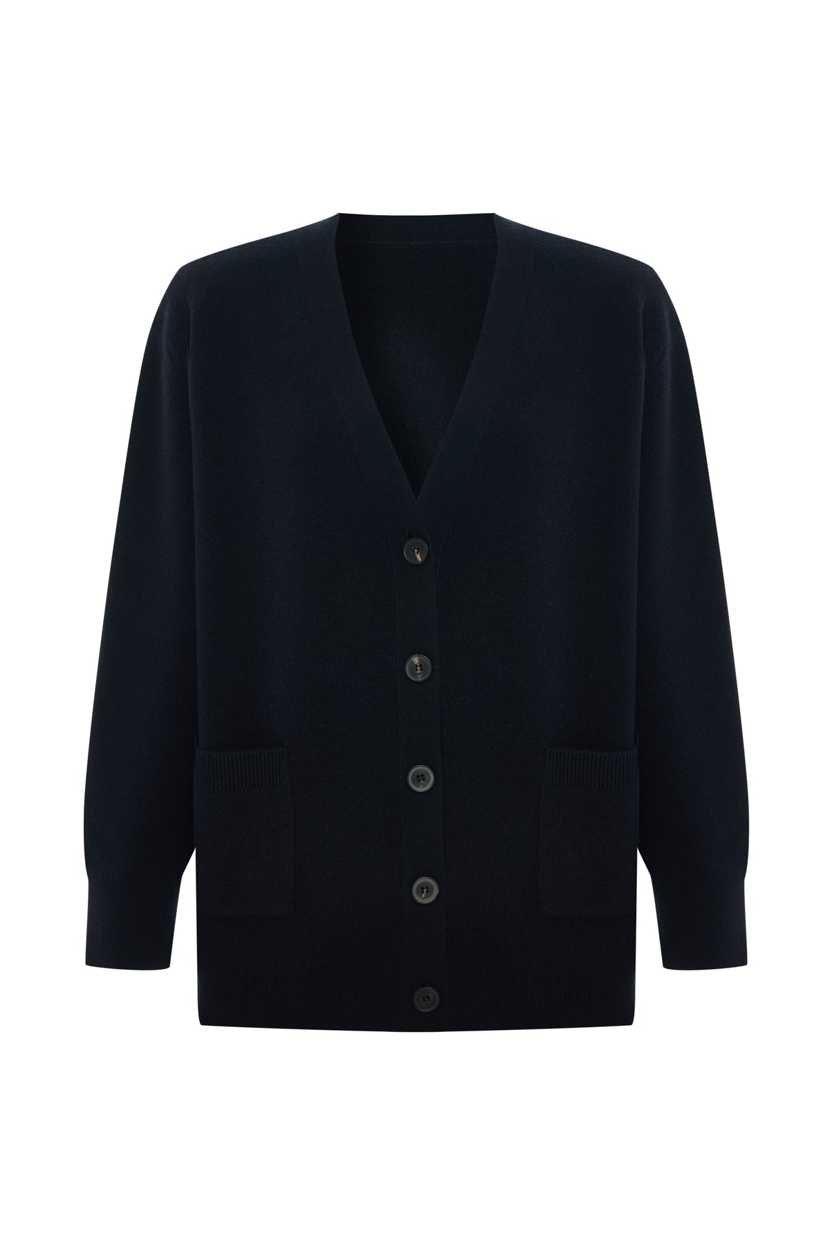 kalıplı hırka. İki yama cep ve doğal boynuz düğmeler ile tamamlanmaktadır.