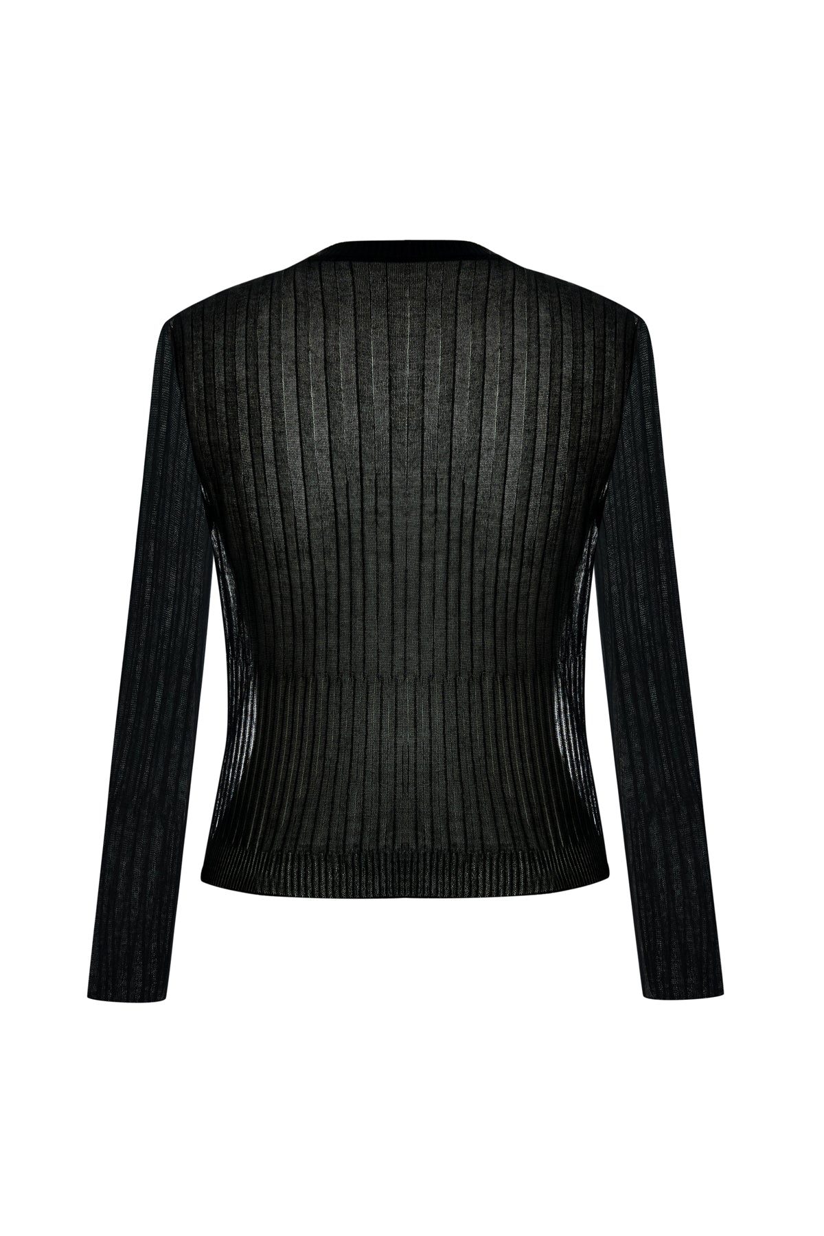 karışımlı iplikten üretilen, yarı transparan uzun kollu hırka. Vücuda oturan