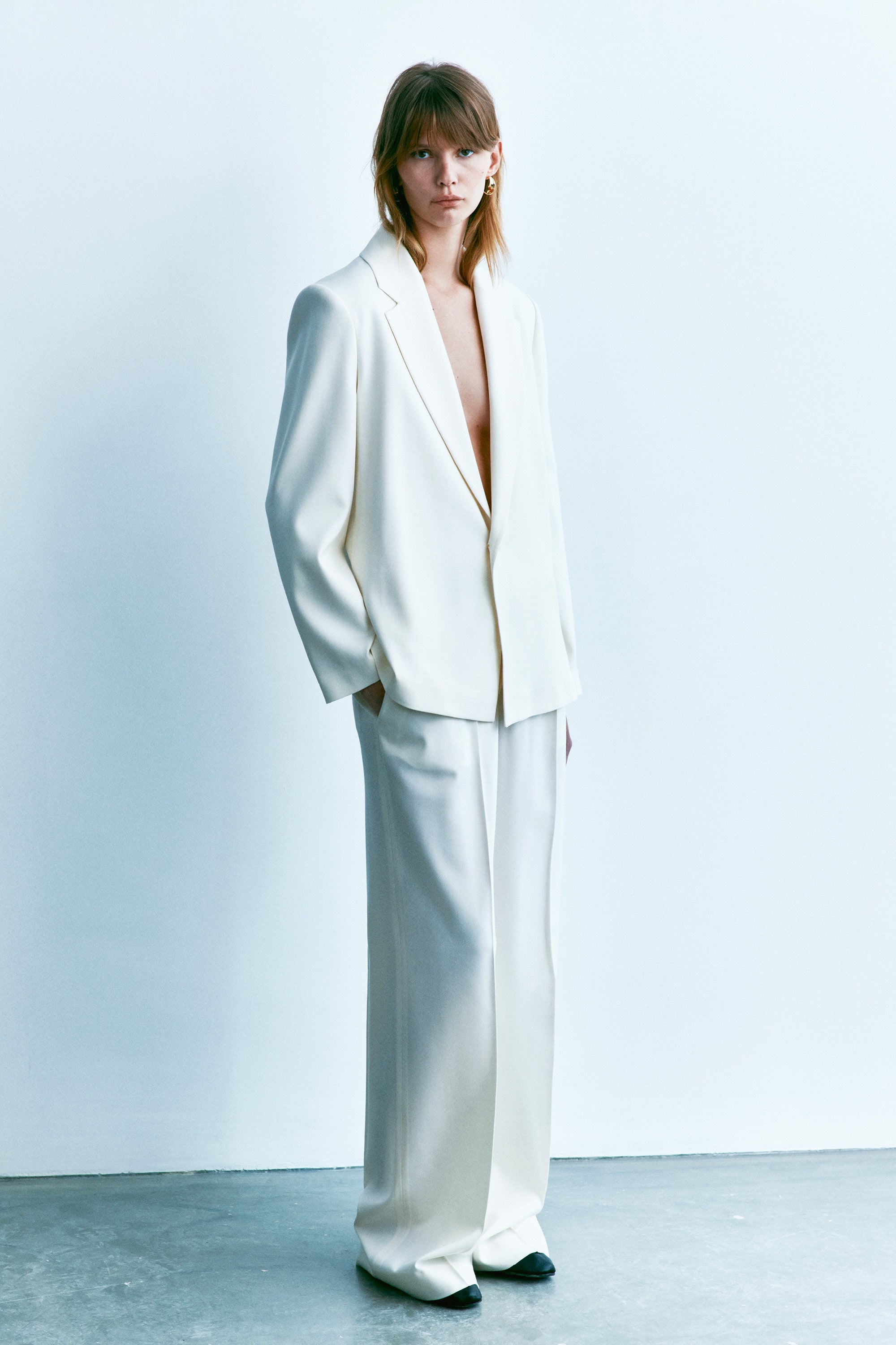 Özel dokuma %100 yün kumaştan tasarlanan orta bel pantolon, rahat kalıbı ve düz paça kesimiyle zamansız şıklık sunar. Çapraz yan cepler ile tamamlanmıştır. Gizli fermuar ve kopça kapamalıdır. Uyumlu bir görünüm için aynı kumaştan Paloma Ceket ile birlikte giyilmesi önerilir.